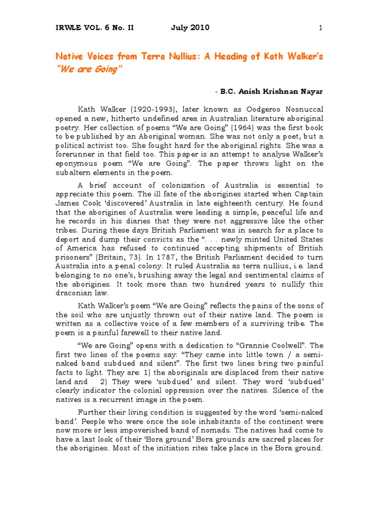 “We Are Going” Native Voices From Terra Nullius A Heading of Kath Walker’s PDF Indigenous